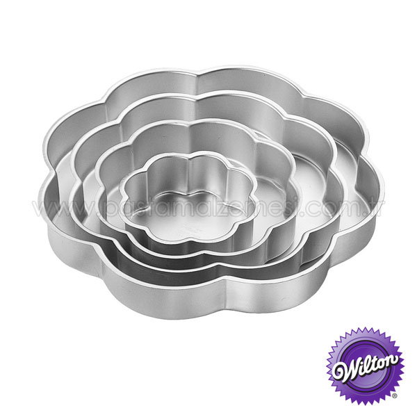 Alüminyum kaliteli Çiçek figürlü Kek Kalıbı 4lü takım. Takım içinde 6, 9, 12, 15 inç olmak üzere 4 adet Alüminyum Çiçek Kek Kalıbı bulunur. Uzun ömürlü ve Wilton kalitesidir.